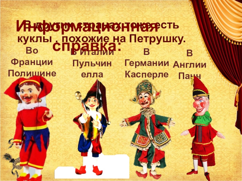 Слайд 15В других странах тоже есть куклы , похожие на Петрушку.