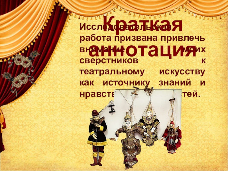 Исследовательская работа призвана привлечь внимание моих сверстников к театральному искусству