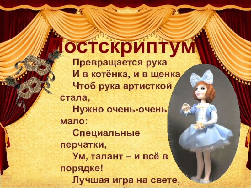 кукол, интерес моих сверстников к театральному искусству значительно возрастет.