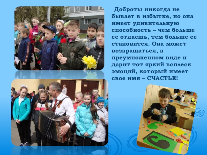 Так же мы всем классом посещаем ветеранов ВОВ, дарим памятные сувениры, открытки, общаемся с ними.