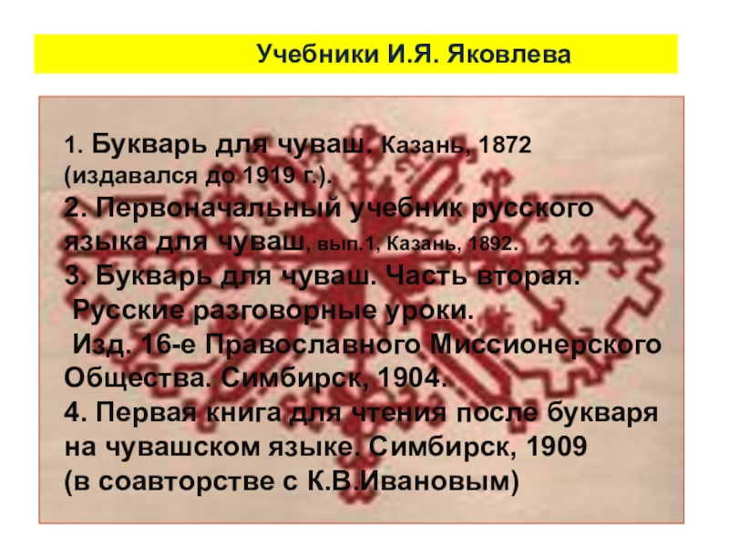 2. Первоначальный учебник русского языка для чуваш, вып.1, Казань, 1892.