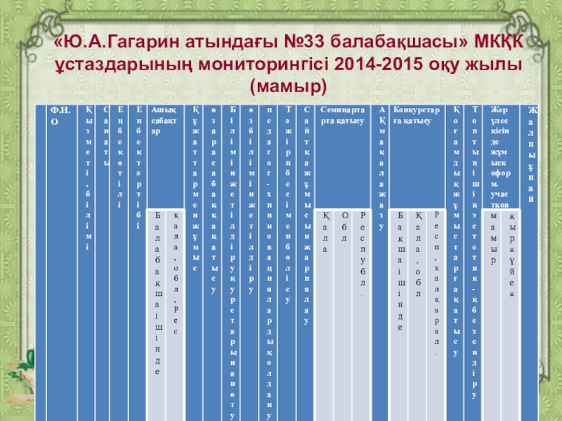 №33 «Ю. Гагарин» атындағы б\б Каппасова А.И.