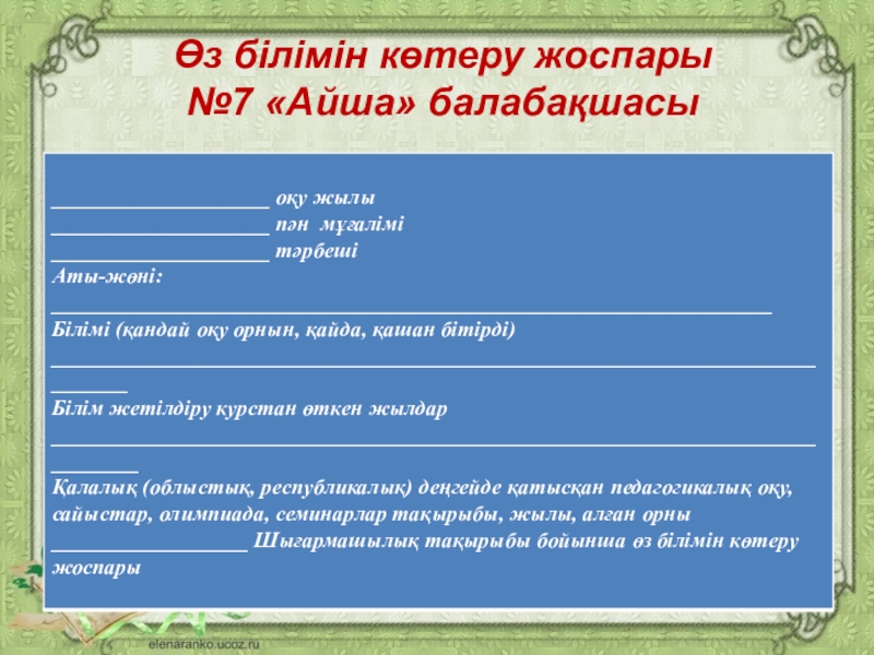 № 21 «Ақбота» б\б Шубаева Н.М.