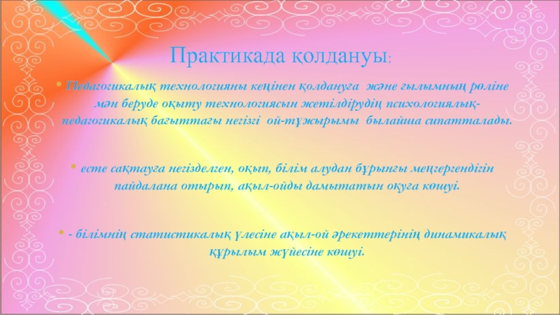 Педагогикалық технологияны кеңінен қолдануға және ғылымның рөліне мән беруде оқыту