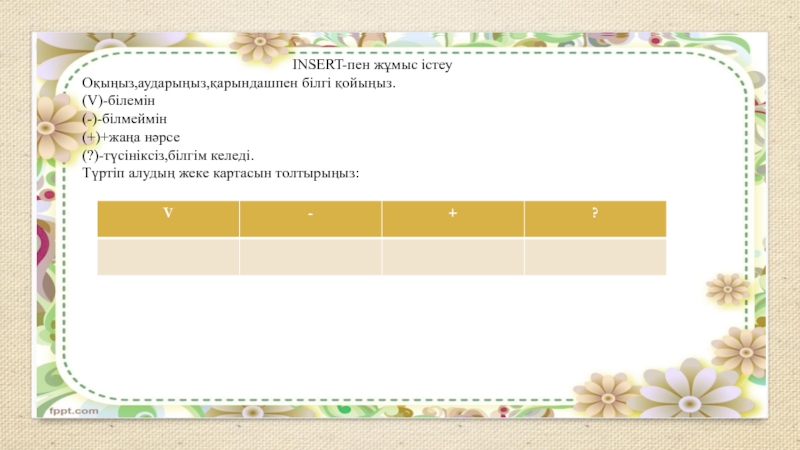 «INSERT»,сұрақ -жауап ,әңгімелеу.