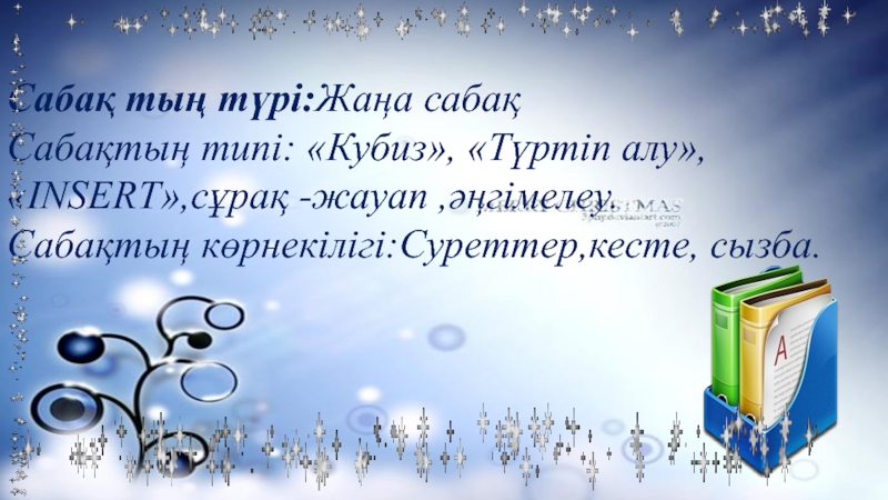 Сабақтың типі: «Кубиз», «Түртіп алу»,
