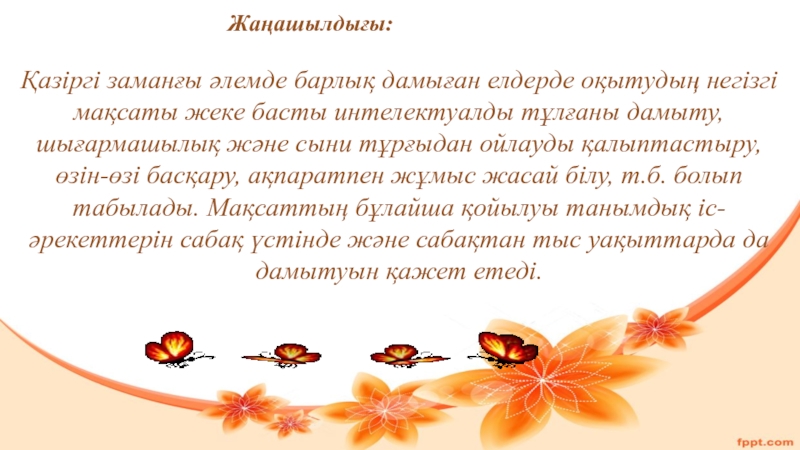 Қазіргі заманғы әлемде барлық дамыған елдерде оқытудың негізгі мақсаты жеке басты