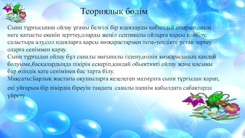 Слайд 5Теориялық бөлім