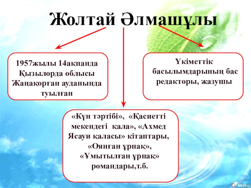 «Күйші», «Құлагер», “Жолдастар”романы,т.б.