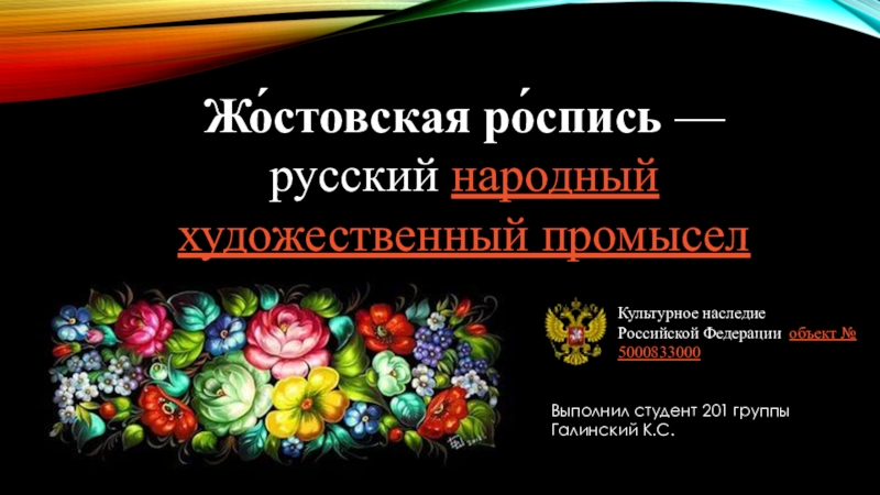 Слайд 1Жо́стовская ро́спись — русский народный художественный промысел