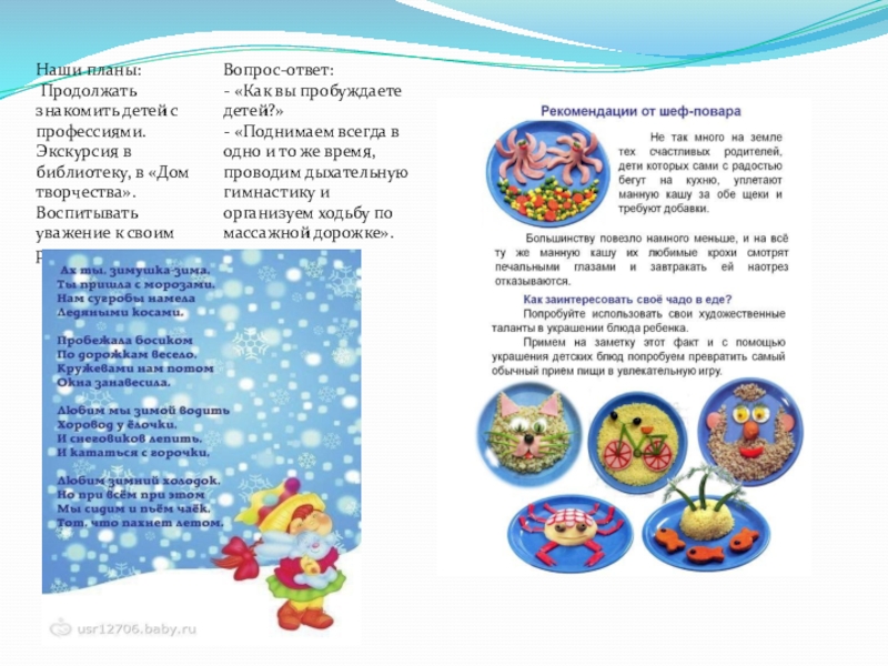 - «Поднимаем всегда в одно и то же время, проводим дыхательную гимнастику и организуем ходьбу по массажной дорожке».