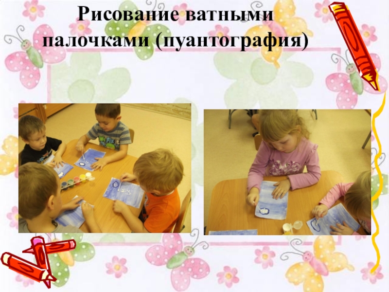 Слайд 32Рисование ватными палочками (пуантография)