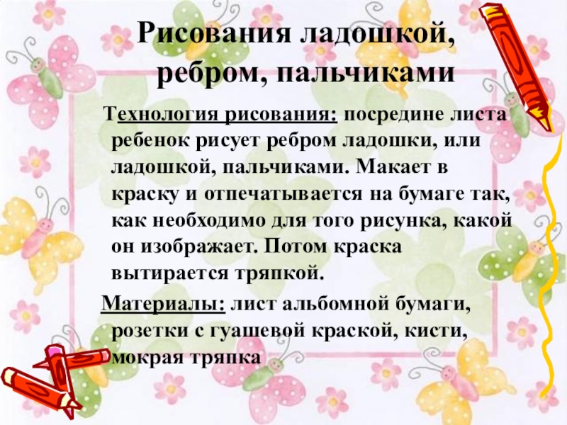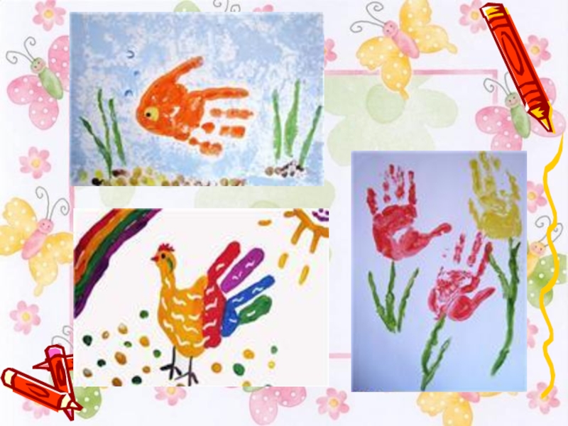 Слайд 5Рисования ладошкой, ребром, пальчиками