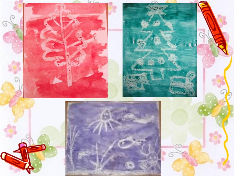 Затонировать лист акварелью. Натереть лист бумаги свечой, затем покрыть