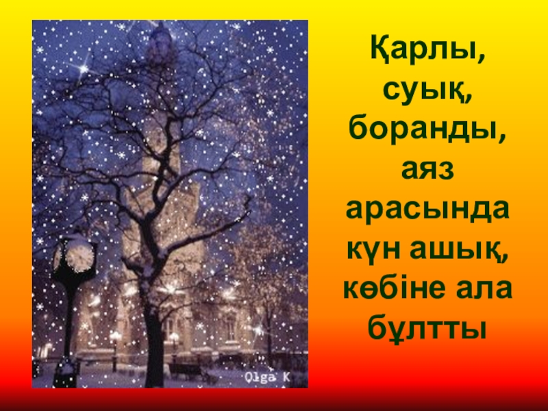 Слайд 10Қарлы, суық, боранды, аяз арасында күн ашық, көбіне ала бұлтты