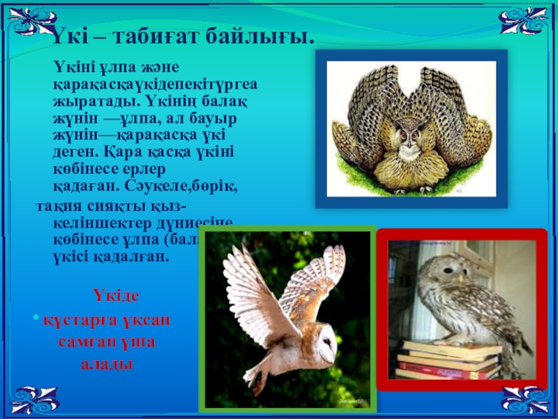 Үкі – табиғат байлығы.