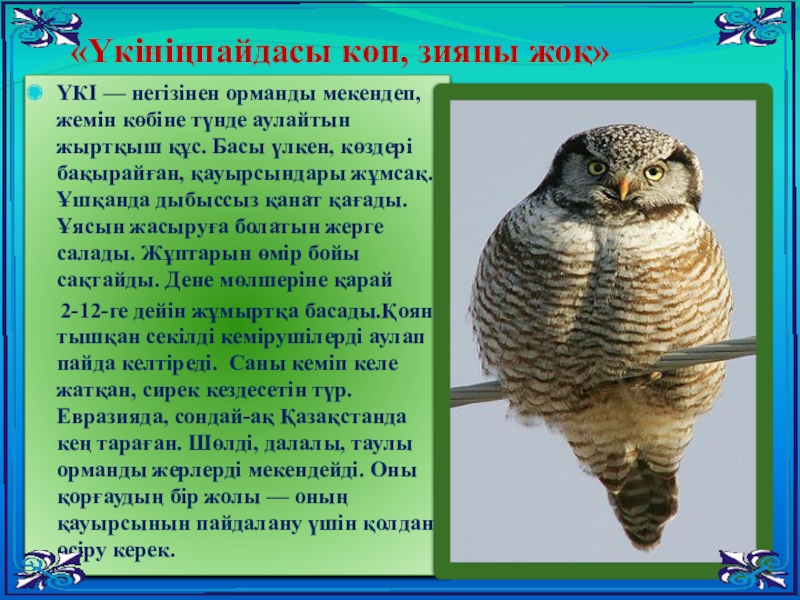 «Үкініңпайдасы көп, зияны жоқ»