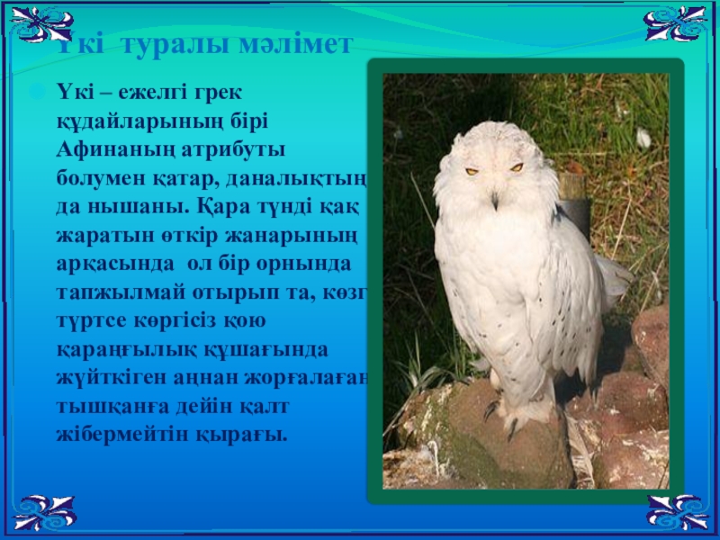 Үкі туралы мәлімет