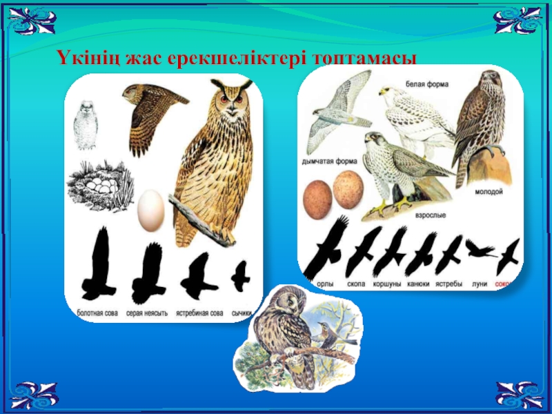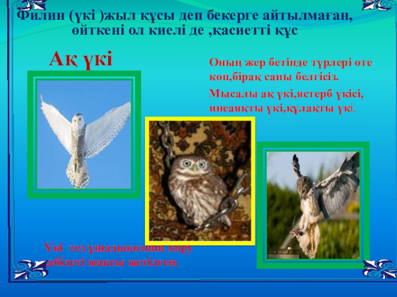 Мысалы ақ үкі,ястерб үкісі,инеаяқты үкі,құлақты үкі.