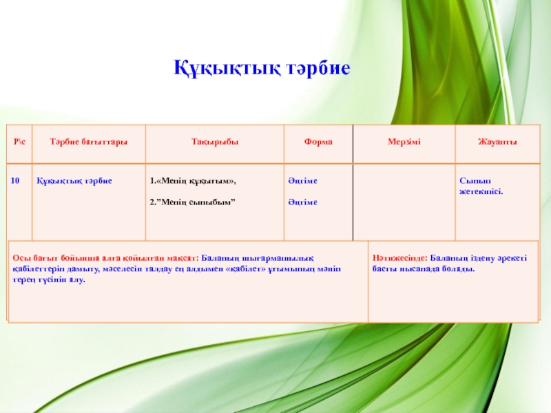 Слайд 9Құқықтық тәрбие