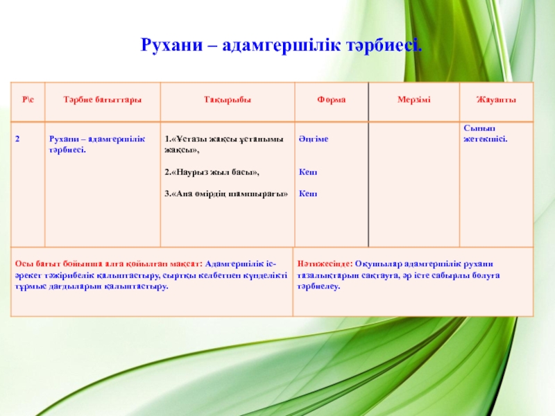 Слайд 2Рухани – адамгершілік тәрбиесі.