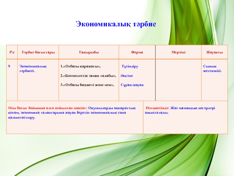 Слайд 10Экономикалық тәрбие
