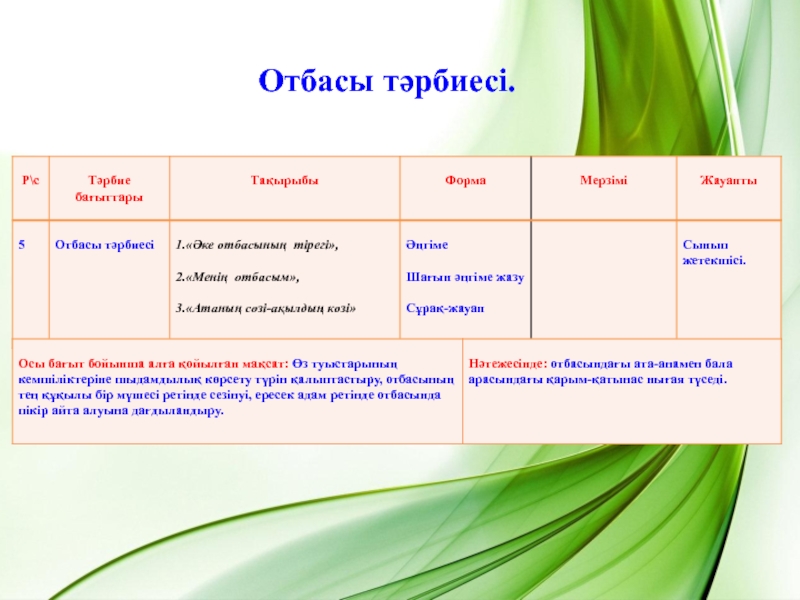 Слайд 5Отбасы тәрбиесі.