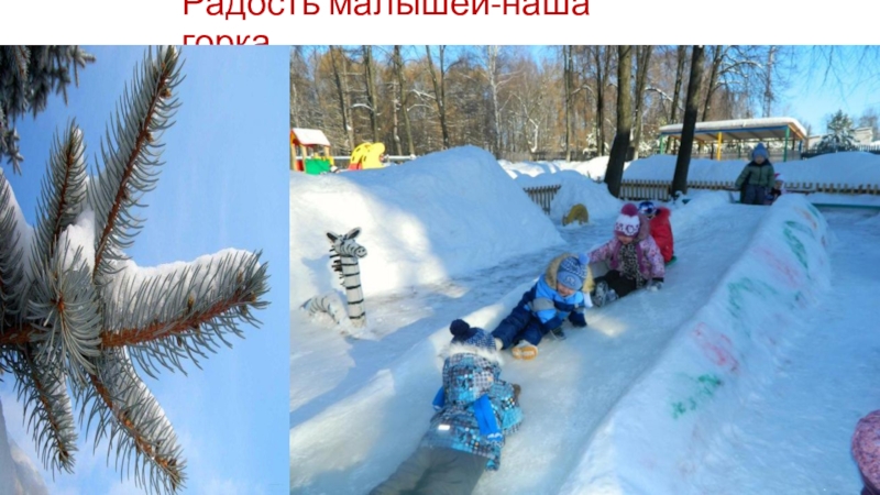 Радость малышей..горкаТевасян С.А. нагрёб большую кучу снега,а Соловьёв А.И. сделал из неё красавицу горку с удобными ступеньками