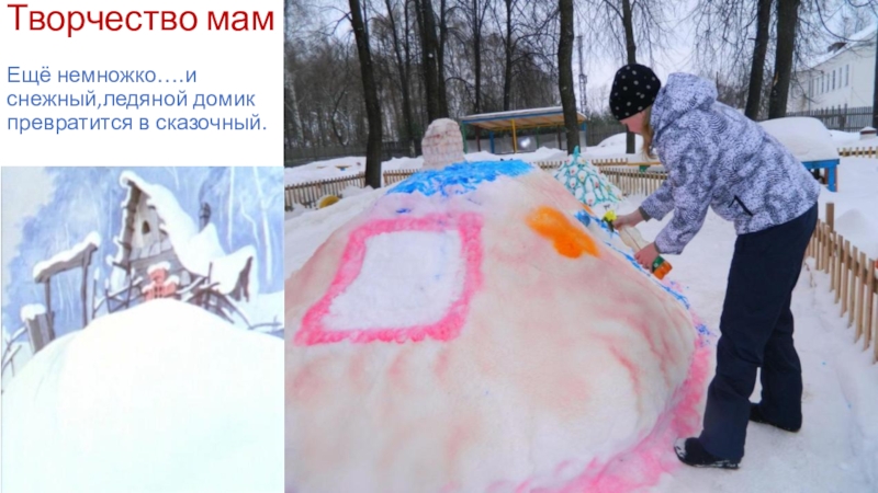 Творчество мамЕщё немножко….и снежный,ледяной домик превратится в сказочный.