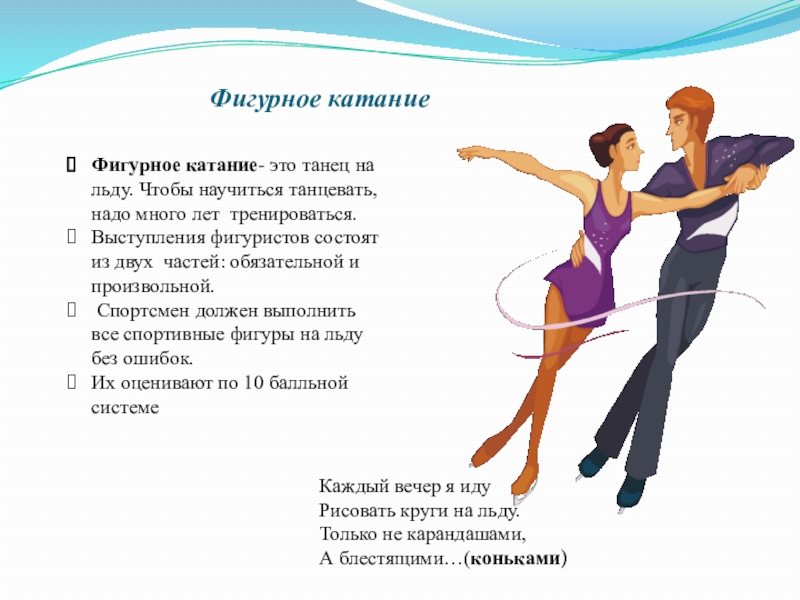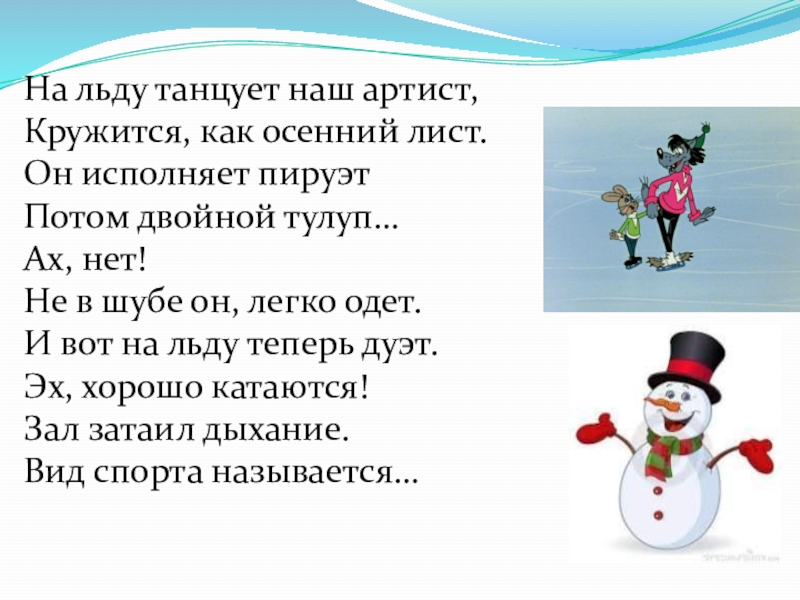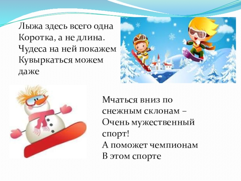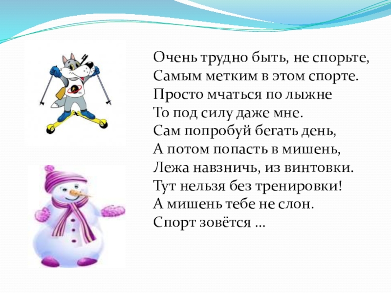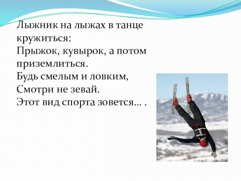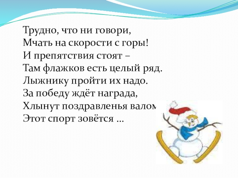 Обогащать и уточнять словарь по теме «Зимние виды спорта».