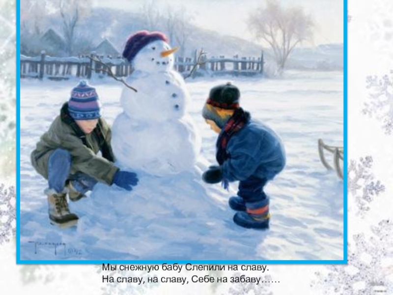 Мы снежную бабу Слепили на славу. На славу, на славу, Себе на забаву……
