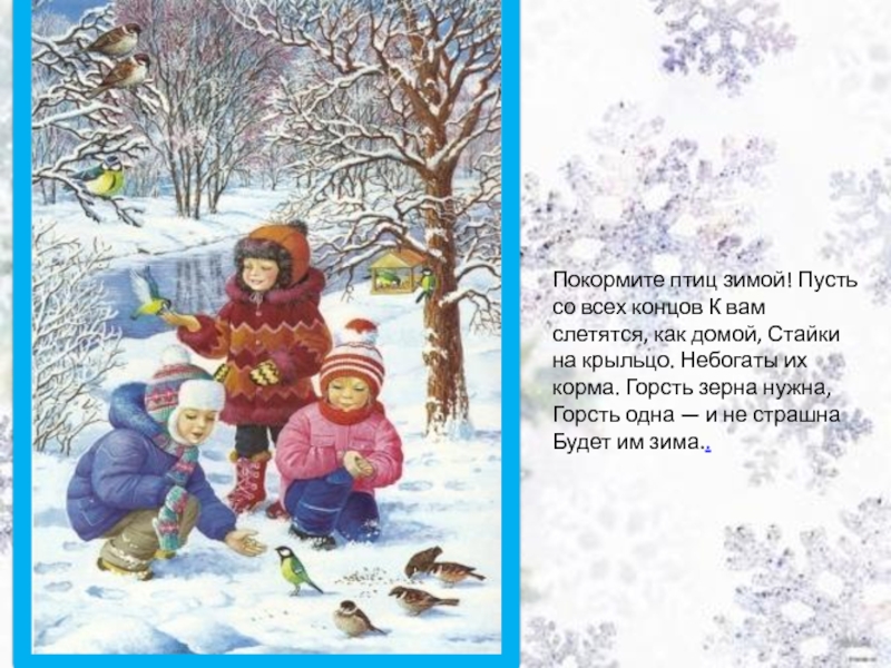 Слайд 8Покормите птиц зимой! Пусть со всех концов К вам слетятся, как
