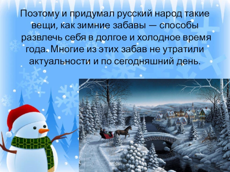 Слайд 4Поэтому и придумал русский народ такие вещи, как зимние забавы — способы развлечь себя