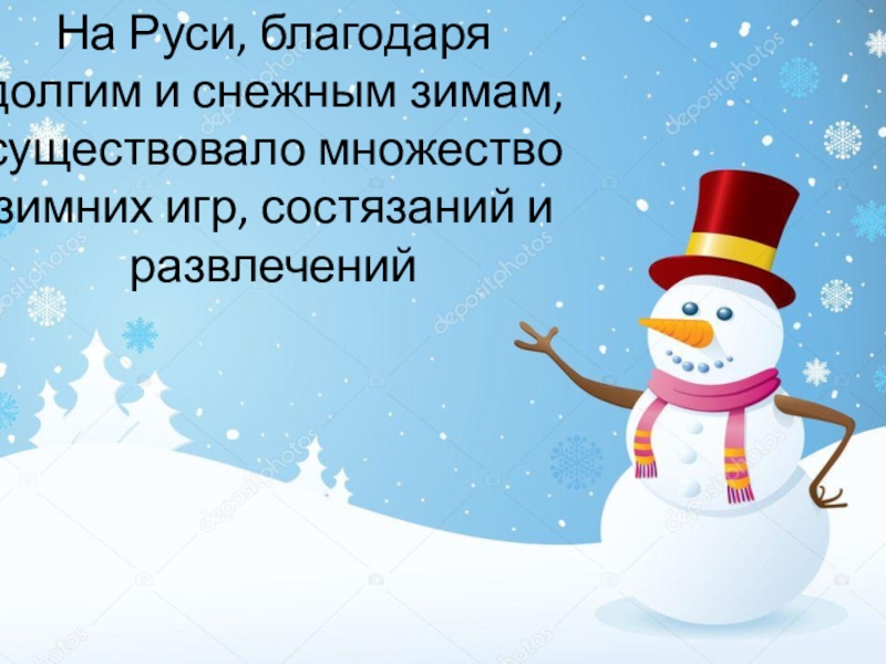 Слайд 2На Руси, благодаря долгим и снежным зимам, существовало множество зимних игр,