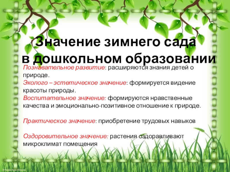 Воспитательное значение: формируются нравственные качества и эмоционально-позитивное отношение к природе.