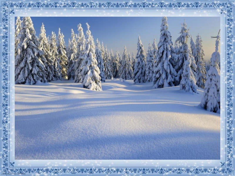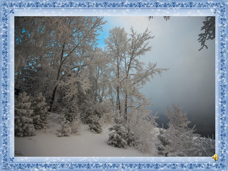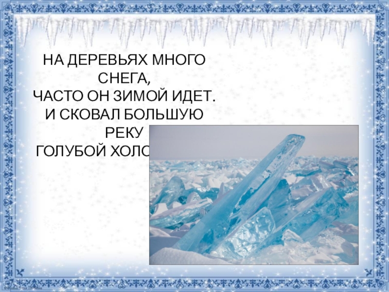 Слайд 7На деревьях много снега, Часто он зимой идет. И сковал большую реку Голубой холодный…