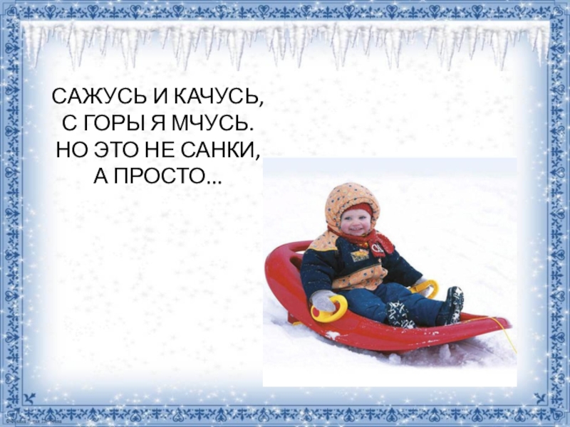 Сажусь и качусь, С горы я мчусь. Но это не санки, А просто...