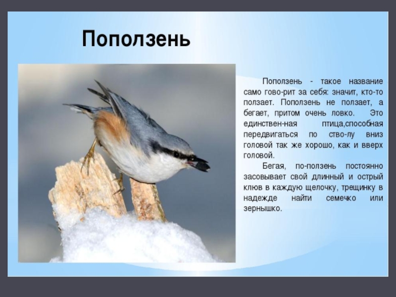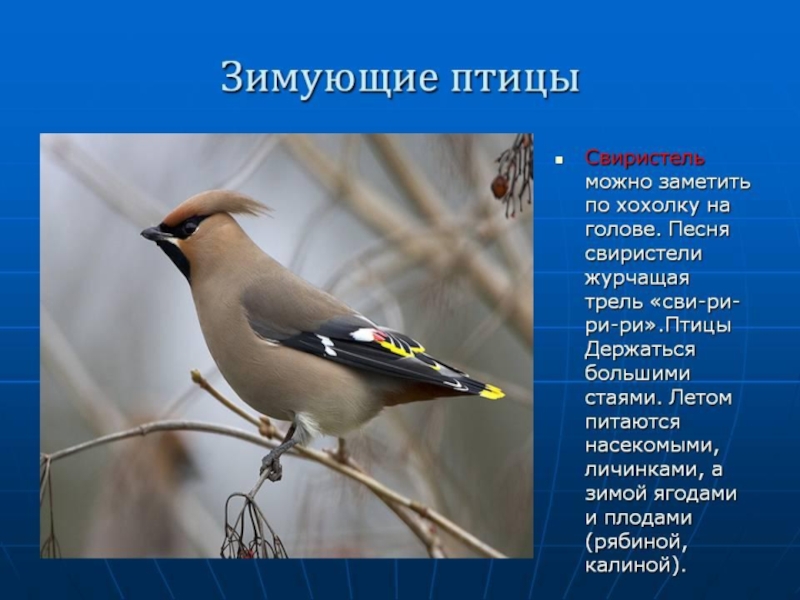 Презентация, доклад на тему Зимующие и перелетные птицы