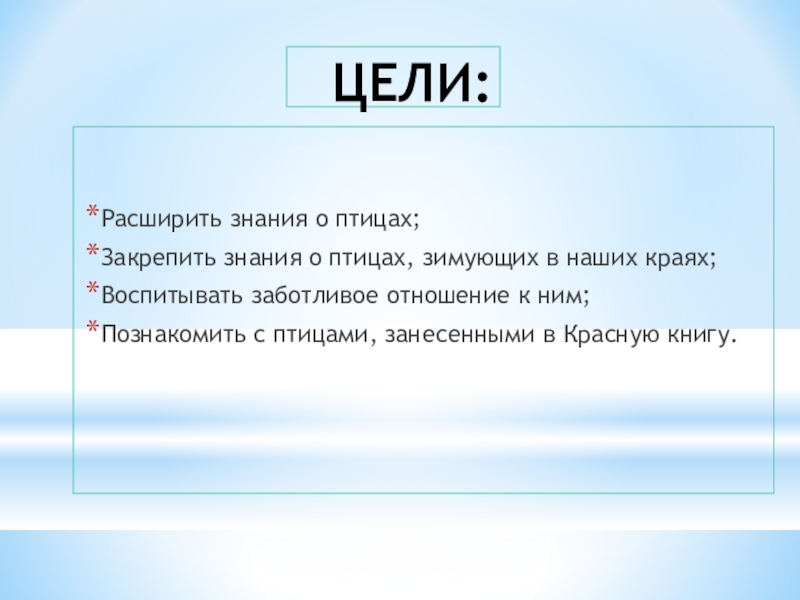 Закрепить знания о птицах, зимующих в наших краях;