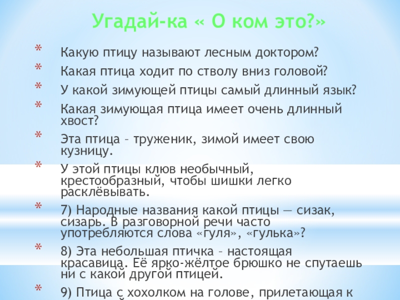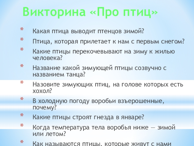 Слайд 23Викторина «Про птиц»