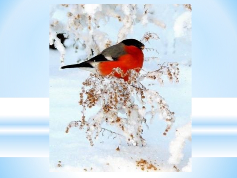 8. Снегирь зимой поёт на снег, вьюгу и слякоть.