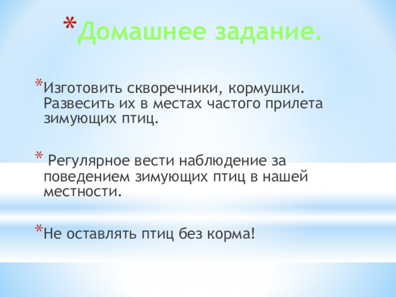 Не оставлять птиц без корма!