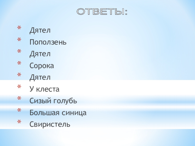 Слайд 32ОТВЕТЫ:
