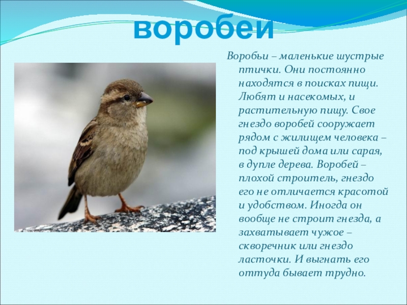 Слайд 3воробей