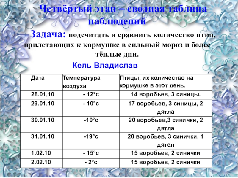 Слайд 20Четвёртый этап – сводная таблица наблюдений