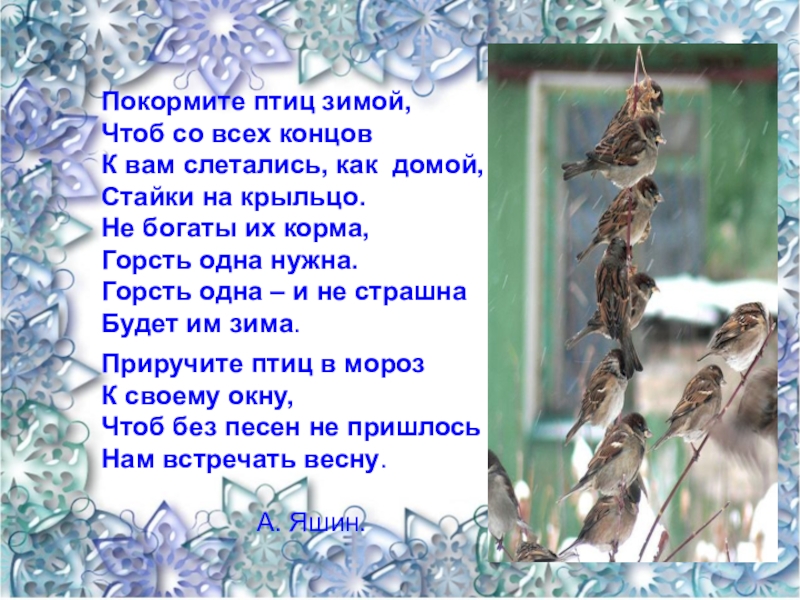 Покормите птиц зимой,