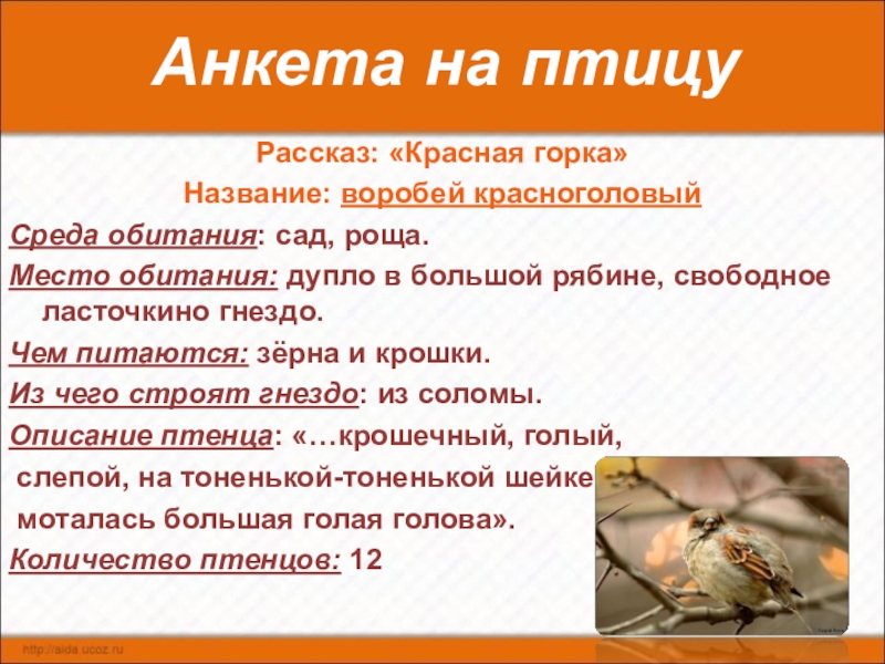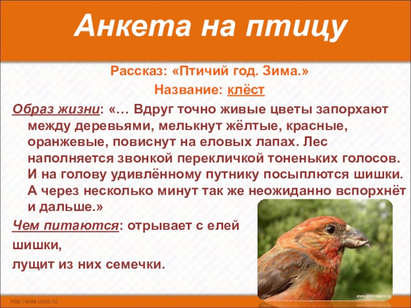 Слайд 26Анкета на птицу