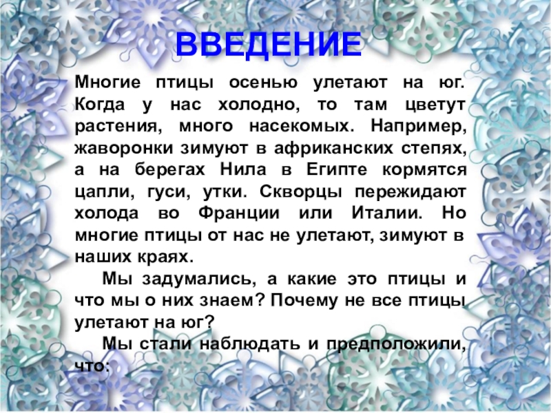 Мы задумались, а какие это птицы и что мы о них знаем? Почему не все птицы улетают на юг?