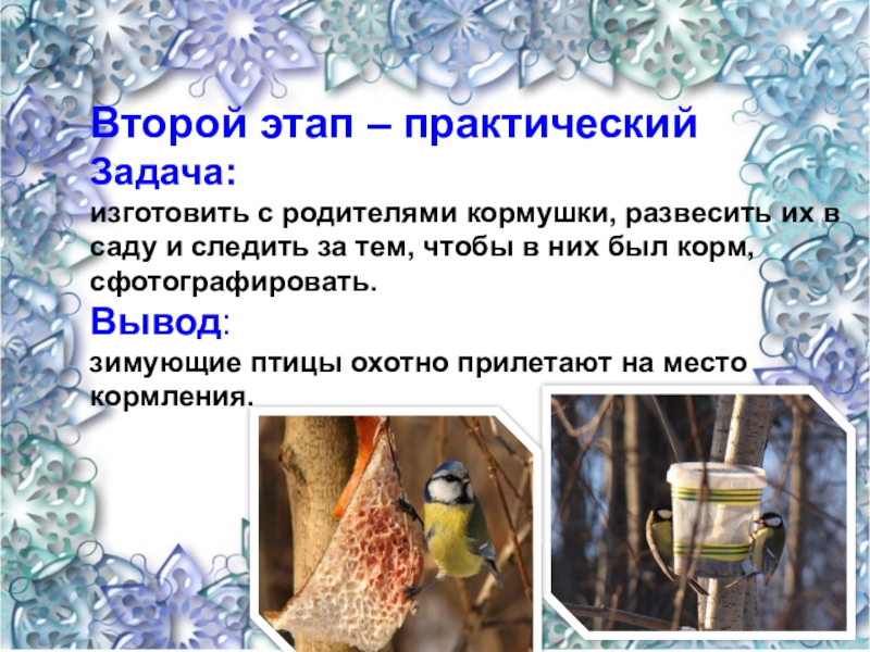 в саду и следить за тем, чтобы в них был корм, сфотографировать.
