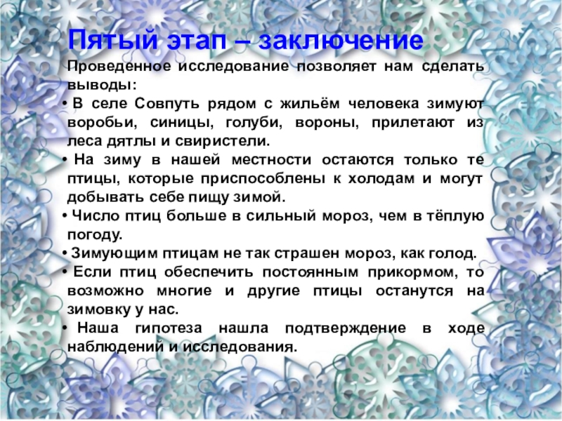 Пятый этап – заключение